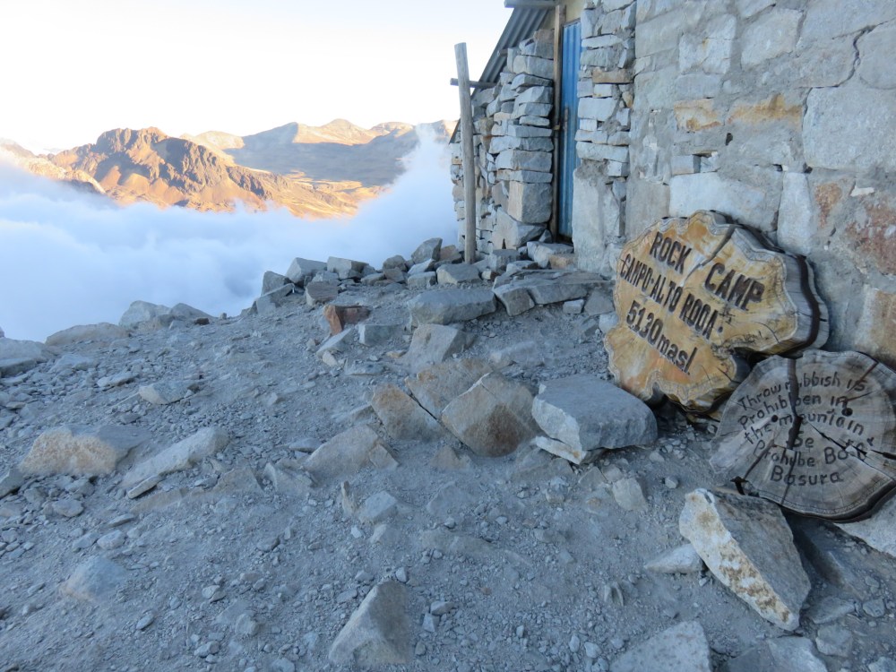 We then made our way on foot with our not very light packs to high camp (5130m) where tea and biscuits were waiting in the lodge for us. After a few hours of chill out time (nap time for me) we were served a dinner of veg and potatoes with chicken for the non veggies. Some people were already struggling with the altitude so there were a lot of leftovers being passed around the table.