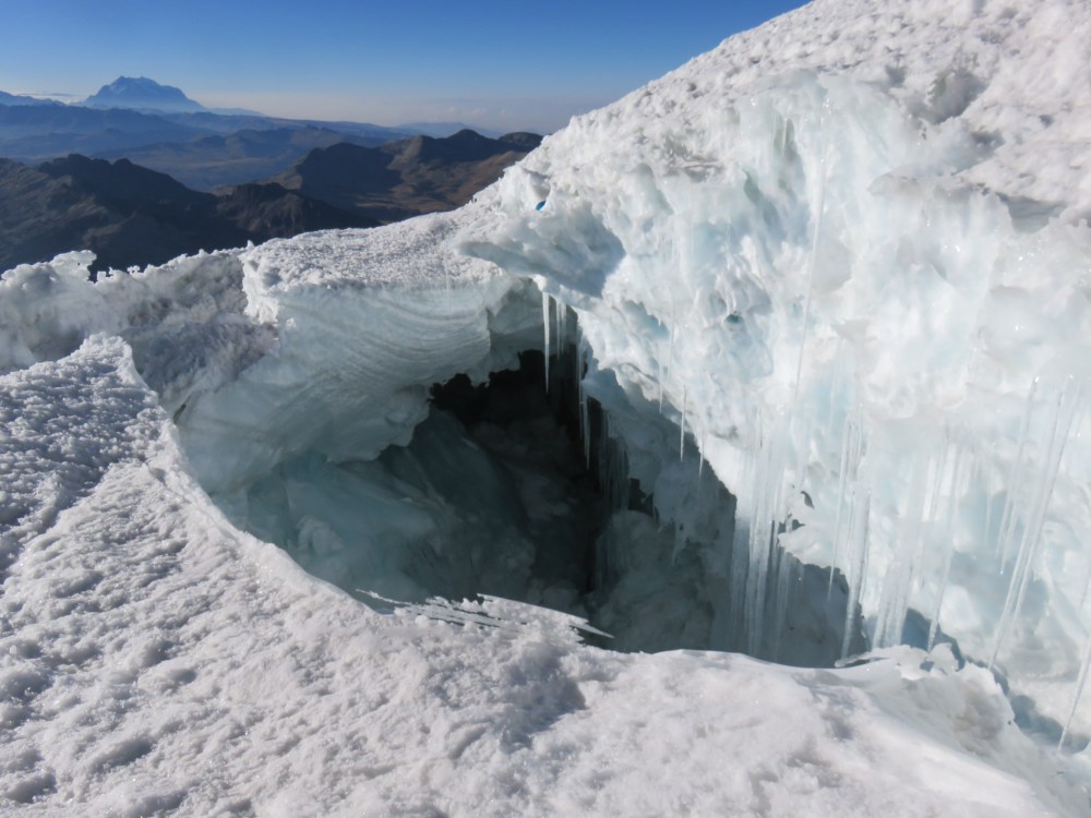 We were all in bed by 7pm in anticipation for our 11.30pm wake up call – some of us got two hours sleep at the most with some not sleeping at all. Between people getting up to go to the outdoor toilet, everyone breathing very heavily due to the thin air and lots of tossing and turning attributed to altitude sickness and nerves about the impending hike it was quite a noisy dorm. But we were all up, fed and dressed to start the hike at 12.30am as planned in five pairs with a guide for each duo – everyone topped with a headlamp as it was the middle of the night. I was paired with a Brazilian guy who decided very quickly that he wouldn’t make the top and headed back for the lodge with our guide Victor. I temporarily joined another pair and after the initial hour of rock scrambling we attached our crampons and grabbed our ice axes to start hiking on the glacier. The three of us were attached to one guide for about an hour before Victor came charging up the hill beside us.