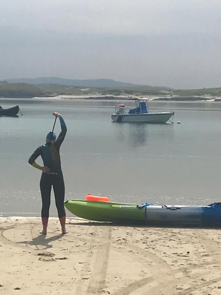 My brother asked me at the start of lockdown if I wanted to swim around Omey and I said yes (I say yes to everything) but he has since bailed to go and work in a very cool cafe in Bundoran. We planned to start the swim at 11:30am on Friday 14th August to try to hit the strand at high tide. The conditions were perfect; an easterly wind meant the sea was unusually calm and the warm temperature meant my parents were comfortable on their kayak with no wetsuits on.