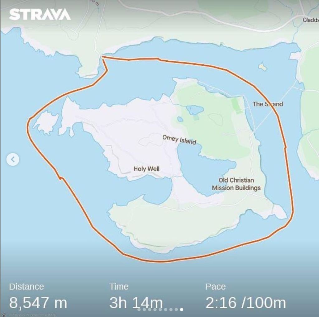 Once across the strand I had the pier in sight again and swam the last 2km with Omey Island on my left and Claddaghduff on my right. It was an amazing experience and I felt really connected to my surroundings, especially over that last 2km. Thanks to everyone who donated during and after the swim – it’s very much appreciated!